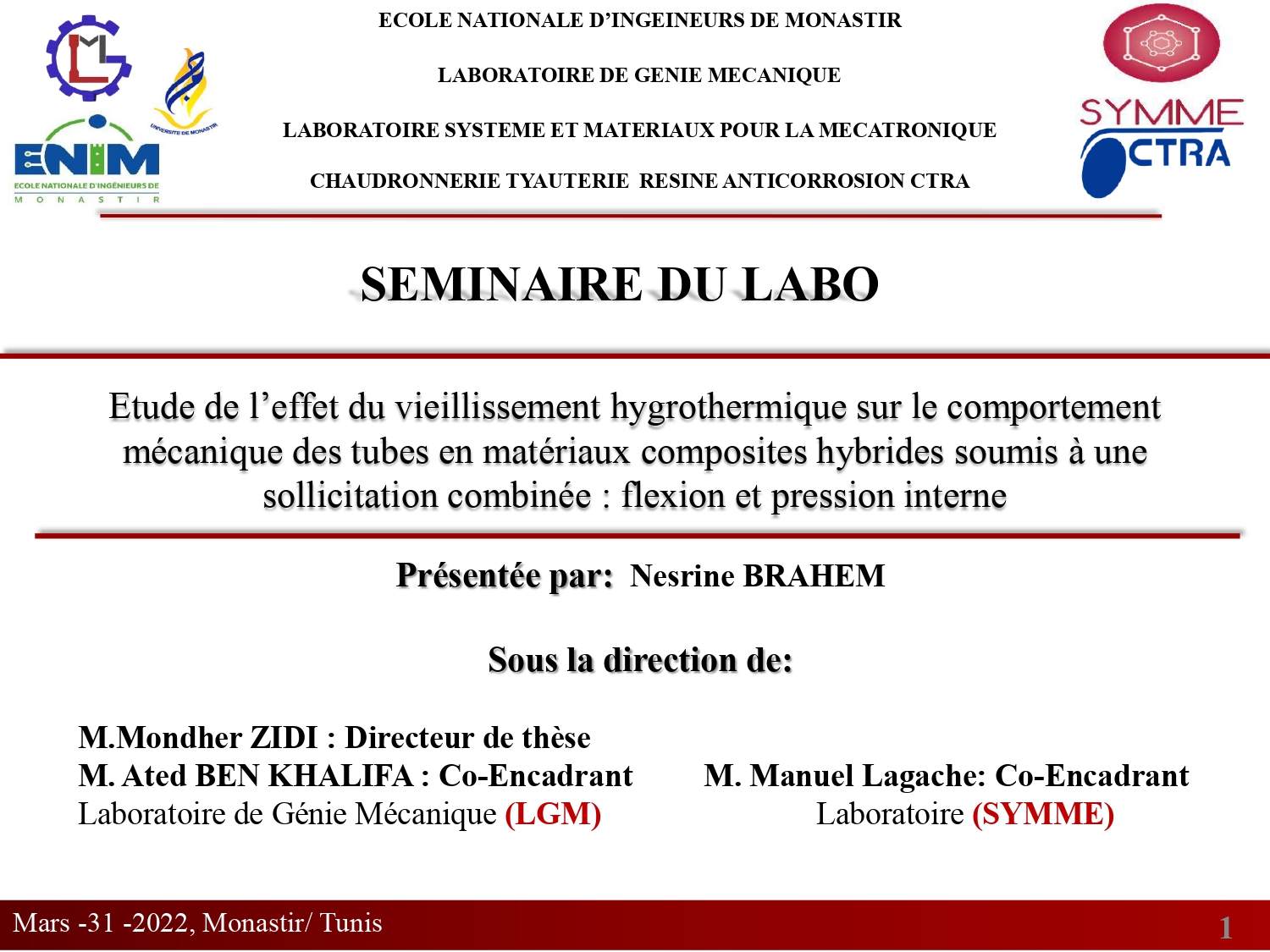 Le séminaire hebdomadaire du Laboratoire LGM-Enim aura lieu Jeudi 31-03-2022 à 13h.
