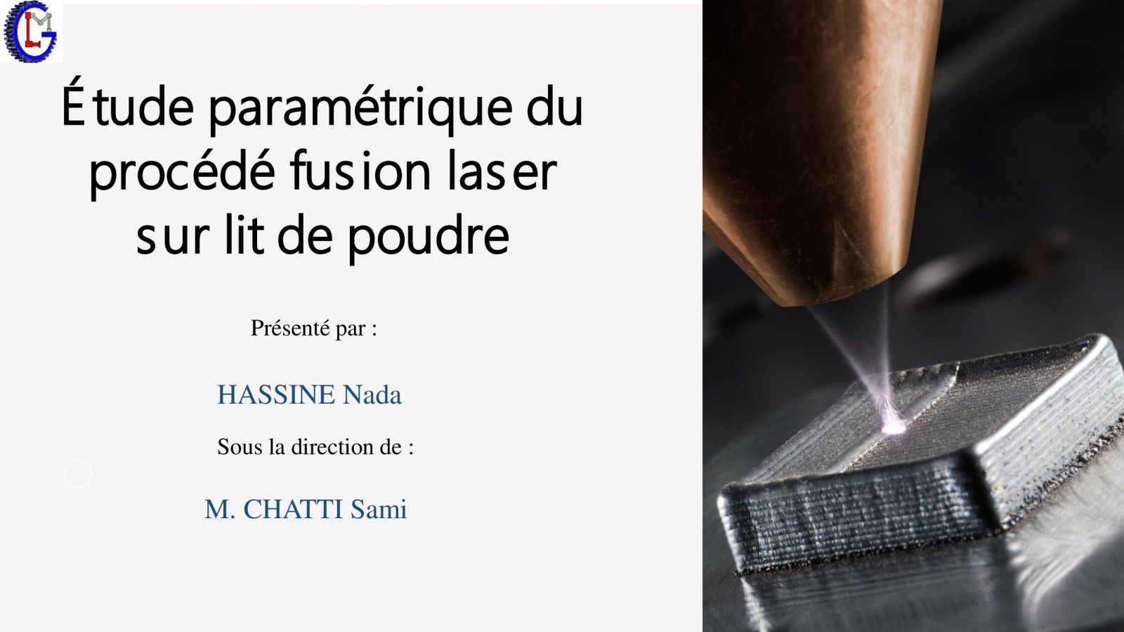 La doctorante Nada Hassine va présenter une partie de ses travaux de recherches intitulée : " Etude paramétrique du procédé fusion laser sur lit de poudre ".